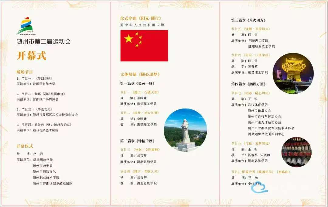 10月22日,随州市第三届运动会在全城的热切期盼中盛大开幕。此次运动会以“神韵随州 一见钟情”为主题,由随州市人民政府主办,曾都区人民政府等多个单位承办。湖北恩施学院舞蹈系100名学生,在侯滔、姚阳文老师的带领下,积极投身于开幕式的排练与演出,为这场体育盛事增添了浓墨重彩的一笔。
