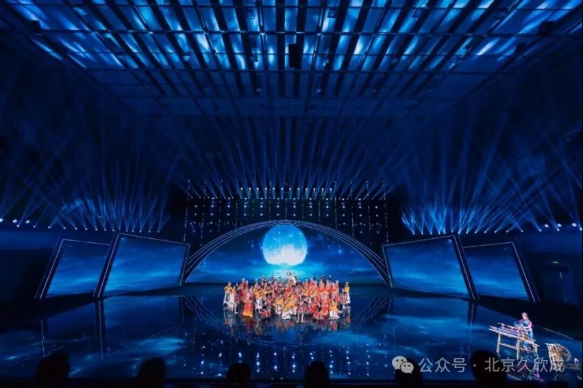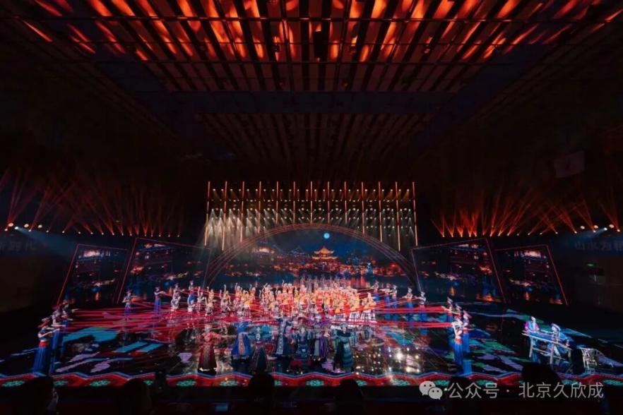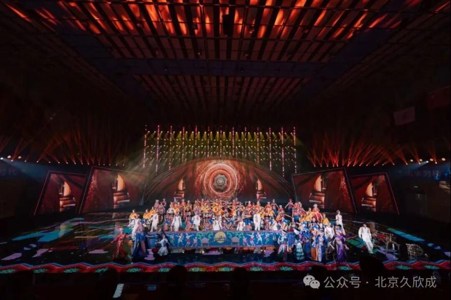 整场演出中,学院师生以专业表现贯穿始终,构建起一条贯穿全场的人文脉络。开幕式环节,舞蹈系学子身着银白渐变演出服,以整齐划一、庄重大气的肢体语言,配合国旗与会徽入场仪式,为整场盛典奠定了庄严而激昂的基调。中篇节目《爱恋・女儿会》以土家族传统婚恋文化为创作源泉,舞者身着民族服饰,手持融入西兰卡普纹样的道具,以细腻灵动的舞步再现“女儿会”的浪漫场景,传递出浓郁的民族风情与地域特色。