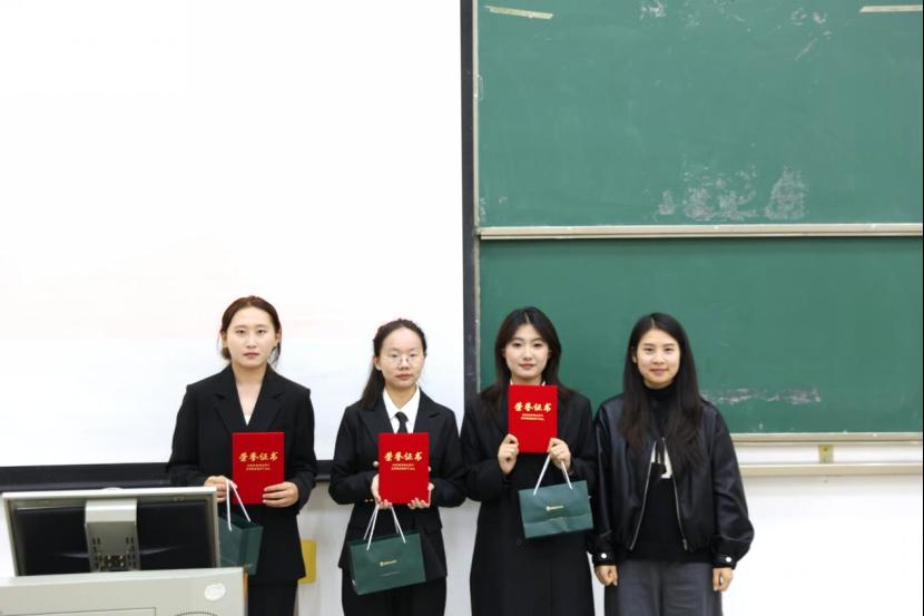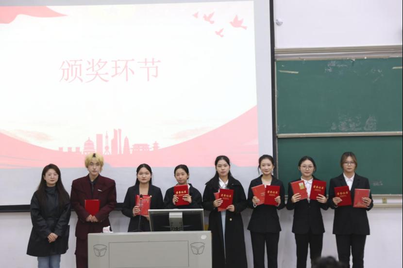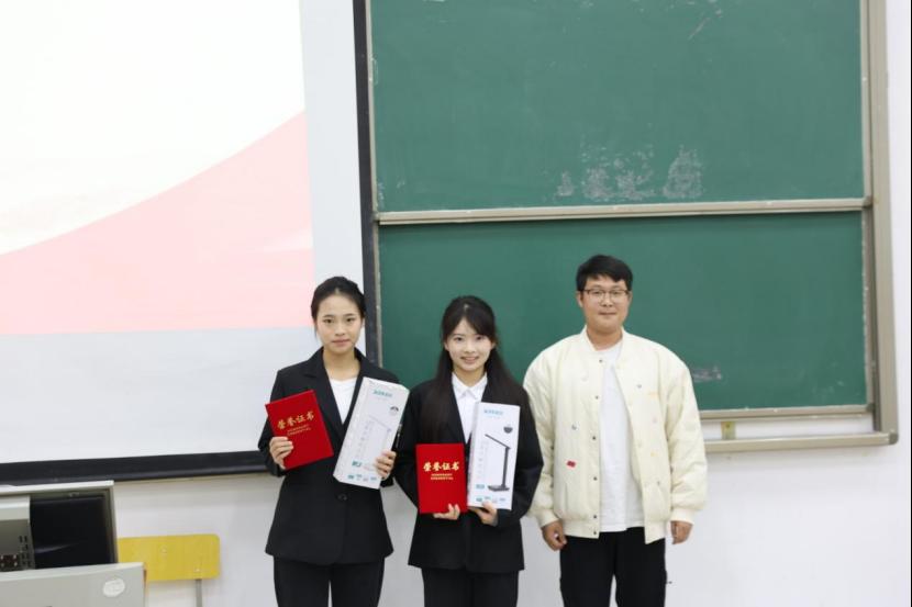 颁奖环节,主持人依次宣读了每位选手的最终得分,评选出就业赛道一等奖一名同学,成长赛道一等奖一名同学,二等奖两名同学,三等奖三位同学,优秀奖六名同学,获奖学生将获得学分认证、荣誉证书及蓝牙音箱、翻页笔、台灯等精美礼品奖励。由各评委老师分别为他们颁发证书并合影留念。