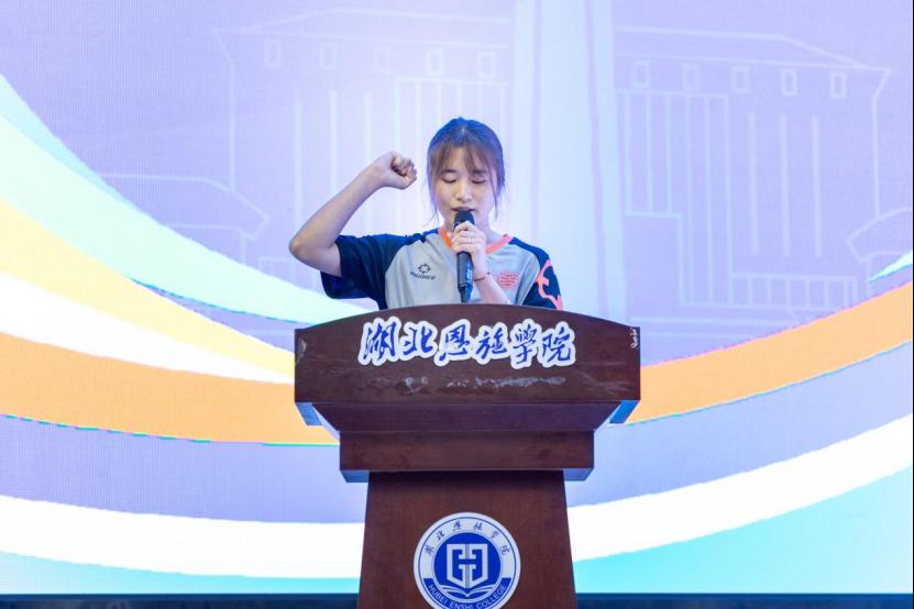在庄严的奏唱国歌仪式后,校党委书记徐淑良为开幕式致辞。他强调了体育育人、全面发展的重要性,并鼓励同学们在赛场上挥洒汗水、突破自我,发扬“友谊第一,比赛第二”的体育精神;裁判员徐畅代表全体裁判员承诺将严格遵守竞赛规则,秉持公平、公正、公开的原则执裁;运动员代表白亦非所有参赛选手表态,将尊重对手、服从裁判,以最佳状态投入比赛;最后,校领导岍校宣布“2025年迎新杯球赛正式开始!”现场掌声雷动,气氛达到高潮。