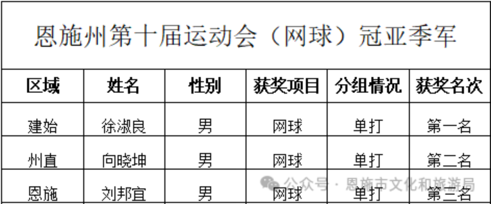 10月24日起,恩施州第十届运动会(群众类项目)开赛,网球项目首次被纳入州运会,标志着全州群众体育项目更加多样。徐淑良书记参与了网球比赛,该项目对体能、技术和心理素质要求较高,他在比赛中发挥稳定,最终获得男子单打冠军。此次网球比赛的场地之一是湖北恩施学院网球场,这也体现了学校在体育设施建设和校园体育文化建设方面的投入。