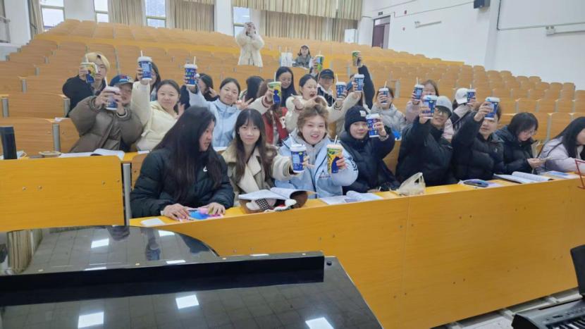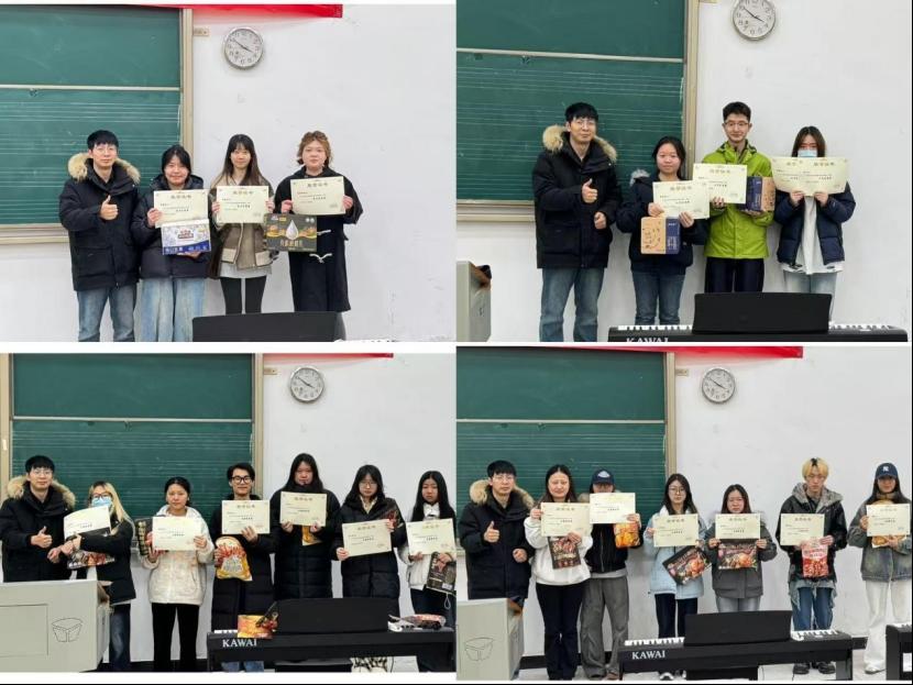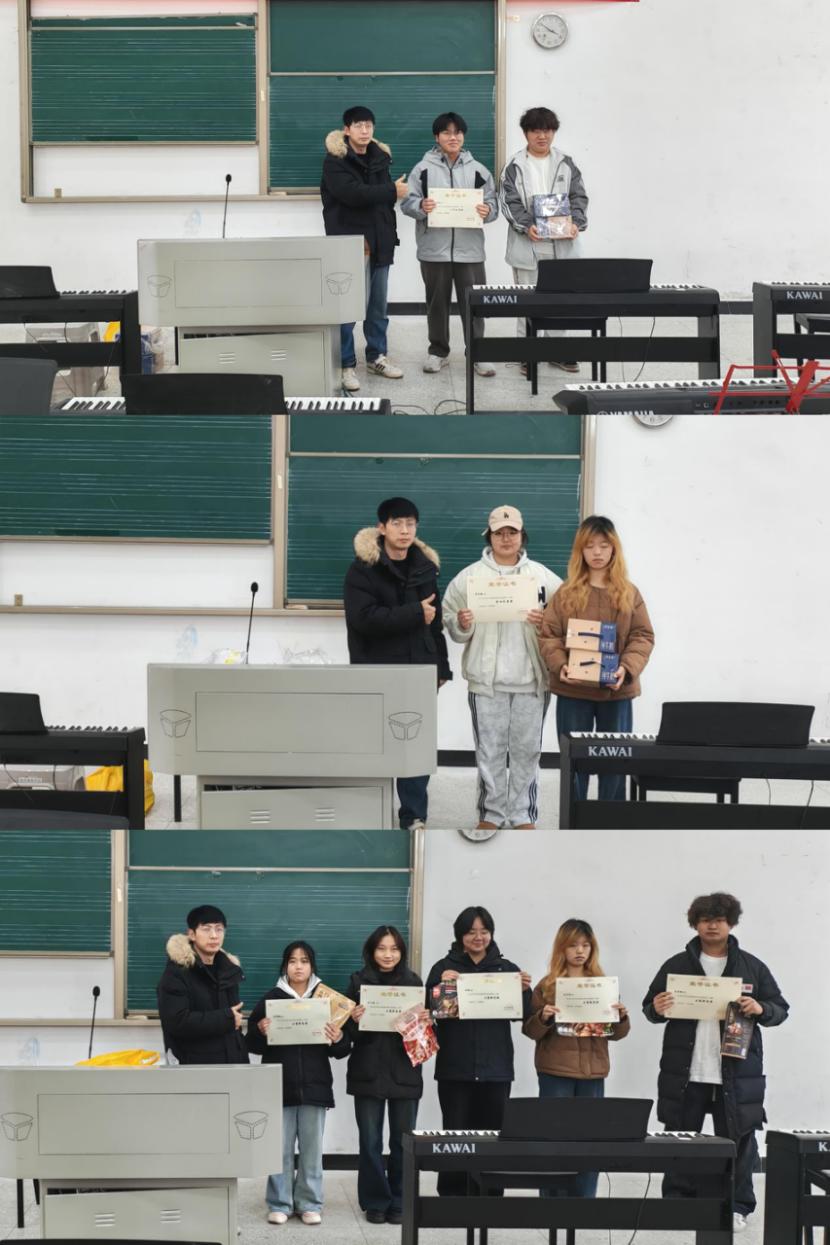 更让人暖心的是赛事的奖励设置。奖品虽朴实无华,却处处藏着沉甸甸的用心:“专业之星”“人气之星”能收获定制神秘礼品、荣誉证书,最重要的是能够获得期末声乐考试由邓老师亲自伴奏的专属福利——这份“一对一”的专业陪伴,比任何物质奖励都让学生珍视;5名“参与优秀奖”的荣誉证书与纪念礼品,让每一份认真参与都不被辜负;邓老师将课堂赛事扩大到了各年级,根据班级表现评选出 “最佳班级奖”,并送上全班奶茶与“明星班级”称号,更让班级凝聚力在共同努力中悄然升温。