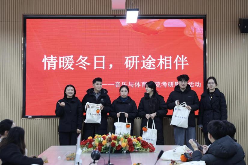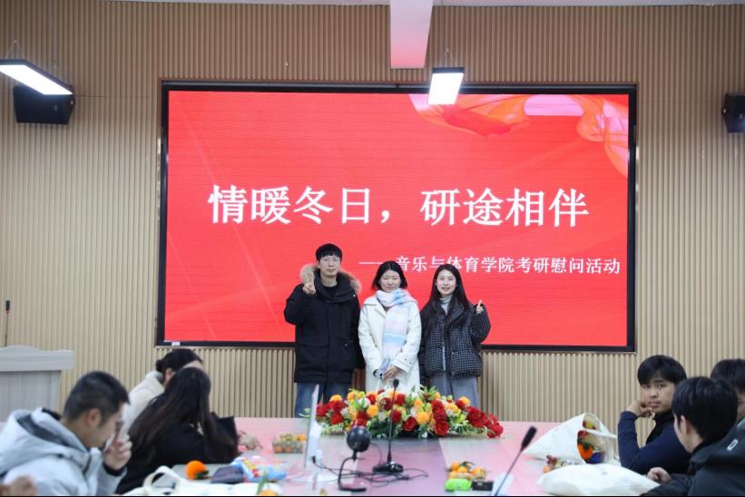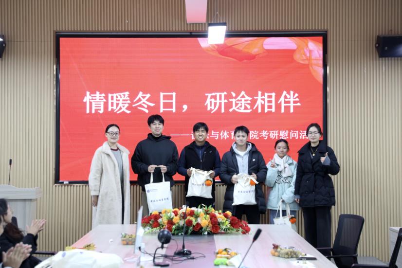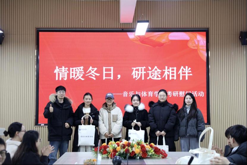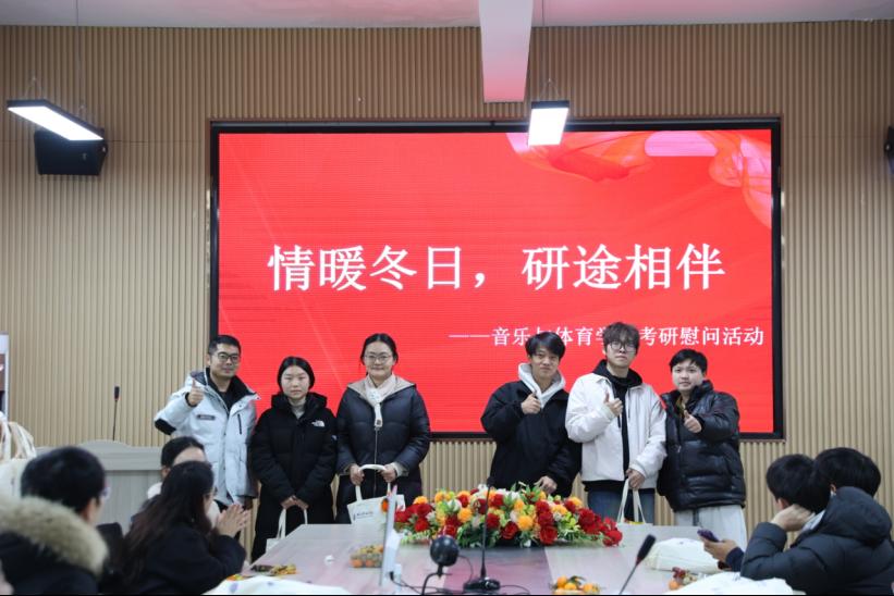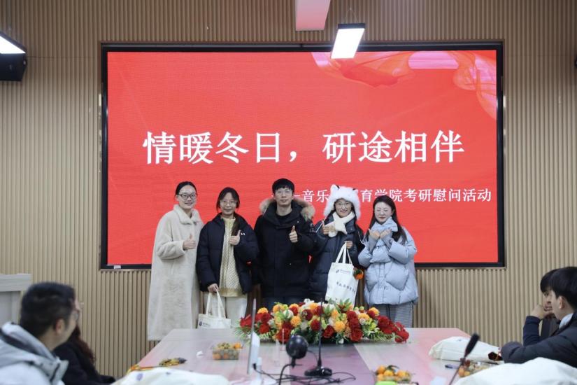 为鼓励考研学子坚定信心、全力冲刺,营造温暖向上的备考氛围,2025年12月11日中午,音乐与体育学院在至精楼405会议室举办了“情暖冬日,研途相伴”考研慰问活动。学院院长邓聪、党委书记徐淑良、各系主任、毕业班辅导员与2026届全体考研学子齐聚一堂,在严寒冬日里传递深切关怀与真挚祝福。