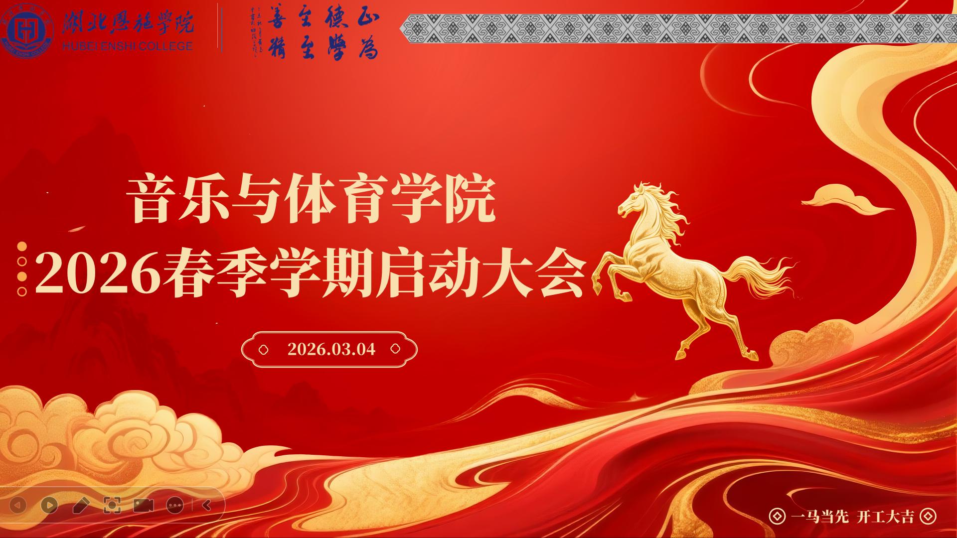 为统筹部署新学期各项工作,明确工作目标与要求,凝心聚力推动学院发展,3月4日下午,湖北恩施学院音乐与体育学院在体育馆三楼会议室召开2026年春季学期启动大会。学院执行院长邓聪主持会议,监事会主席曾繁荣出席,学院全体教职工参加本次会议。