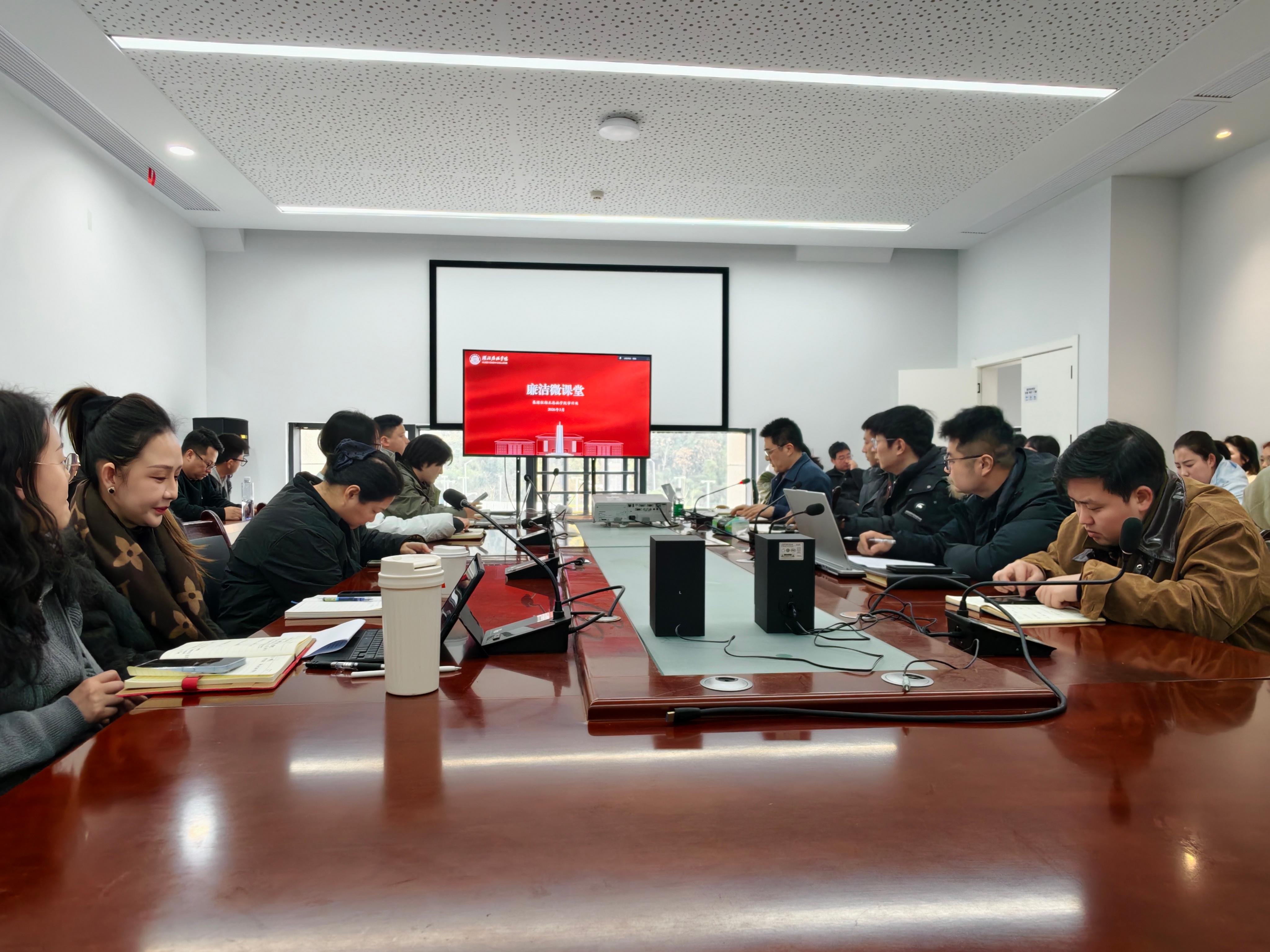 曾繁荣主席以“廉洁微课堂”的形式开展警示教育,结合近期违纪典型案例,围绕教学秩序、费用申报、利益输送、师德规范等方面作廉政提醒,要求全体教职工敬畏规则、严守底线,筑牢廉洁从教思想防线。
