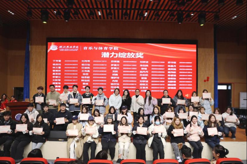 为表彰先进、树立榜样,持续深化“以赛促学、以赛促教、以赛促改” 的育人理念,2026 年 3 月 6 日,湖北恩施学院音乐与体育学院隆重举行 2025 年秋季学期音乐学专业技能课程竞赛表彰仪式。学院执行院长邓聪、音乐系全体教师及获奖学生齐聚现场,共赴此次表彰盛会,见证荣誉时刻,共话专业成长。